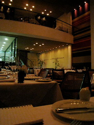 D.O.M. restaurant is located in one of the nicest parts of Sao Paulo, it has nice lighting, dark and intimate wood tones to the main dining hall with a mezzanine that seats about 12 people for private parties. The kitchen is in open view located on the northeast corner of the restaurant with a glass wall separating the diners from the heated bustle of service.