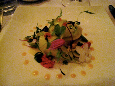 3rd course: fried brioche-breaded Oyster with tapioca and salmon roe. The oyster was delicious, creamy on the inside with nice texture from the brioche breadcrumbs. the salmon roe added a nice brinyness to the dish and it looked just like the little tapioca pearls which worked well.