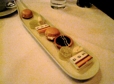 Mignardise: Pate de fruits, Macarons, Chocolate cups and a spongy DOM cake.
